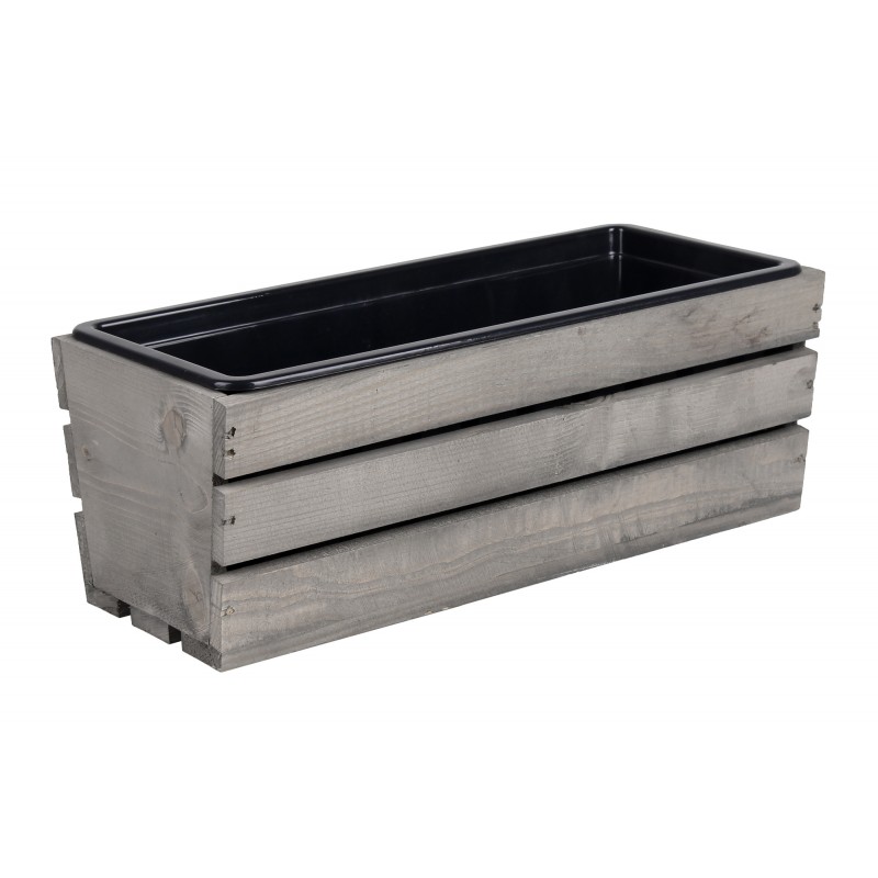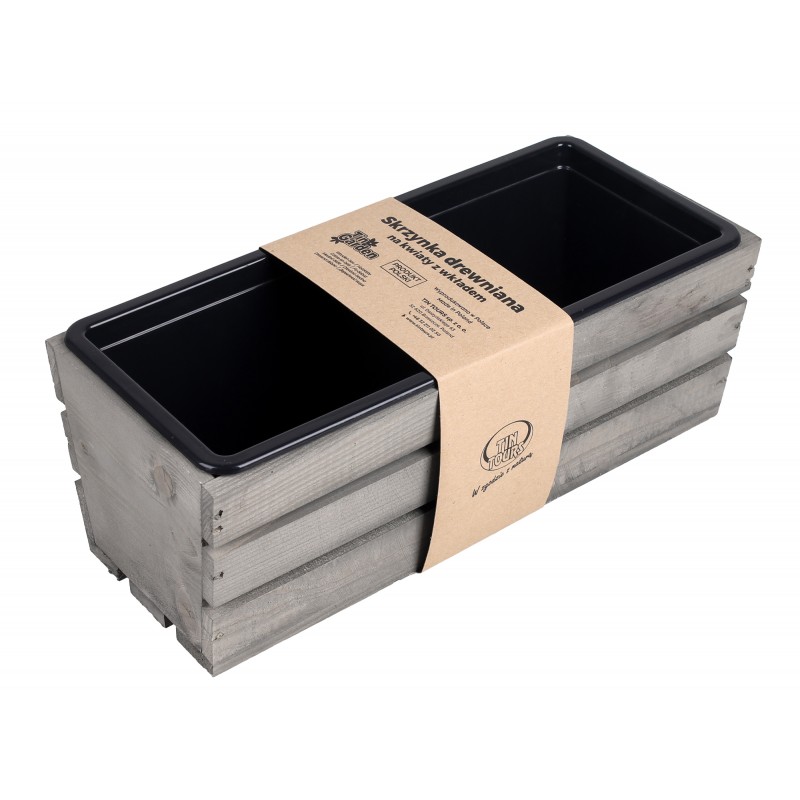 SZARA DREWNIANA SKRZYNKA NA KWIATY I ZIOŁA Z WKŁADEM 40x18x15 cm