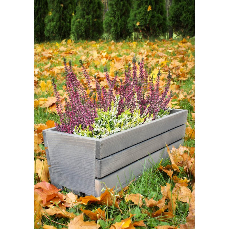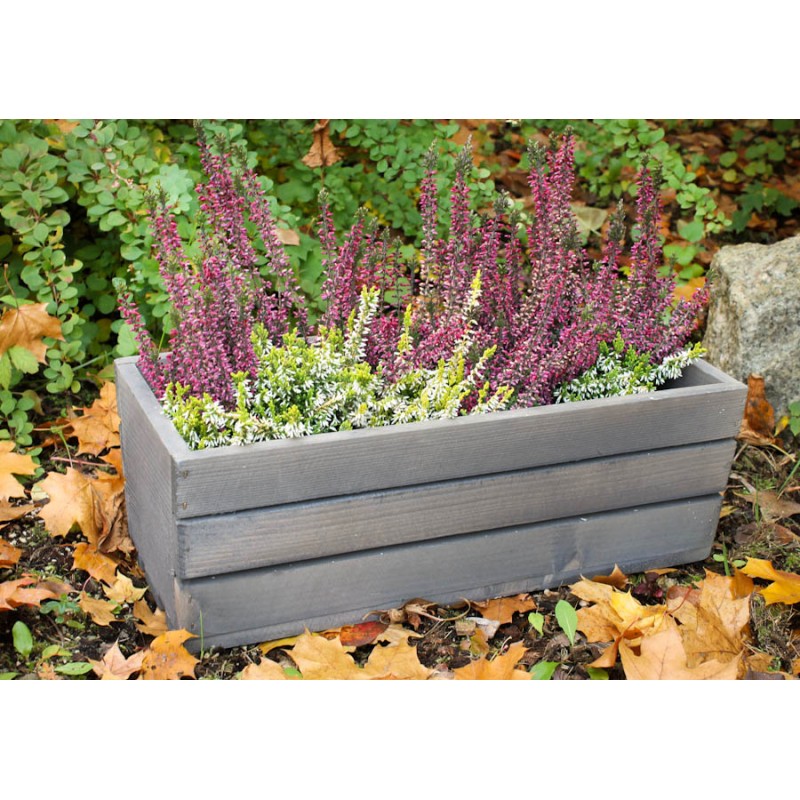 Drewniana Skrzynka na Kwiaty i Zioła z wkładem - Szara 40x18x15 cm