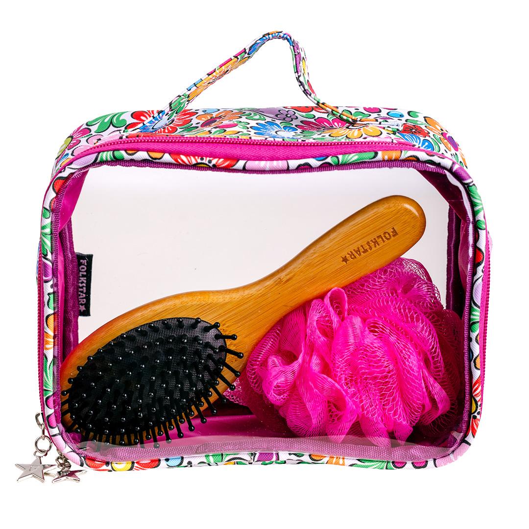 Kosmetyczka Podróżna Folk - Wzory Opolskie Fuksja