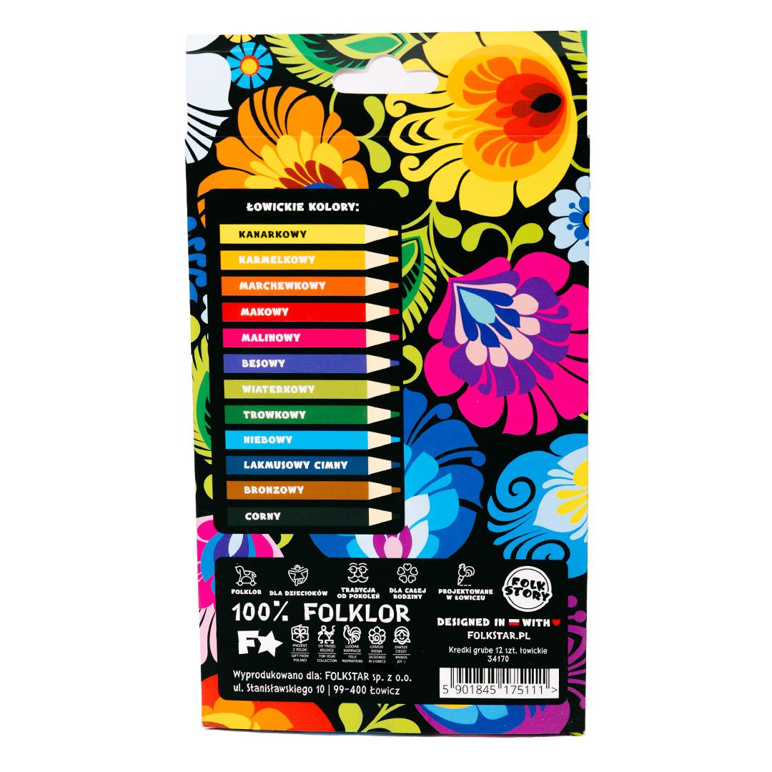 Kredki grube 12 sztuk - Wzory Łowickie - Czarne