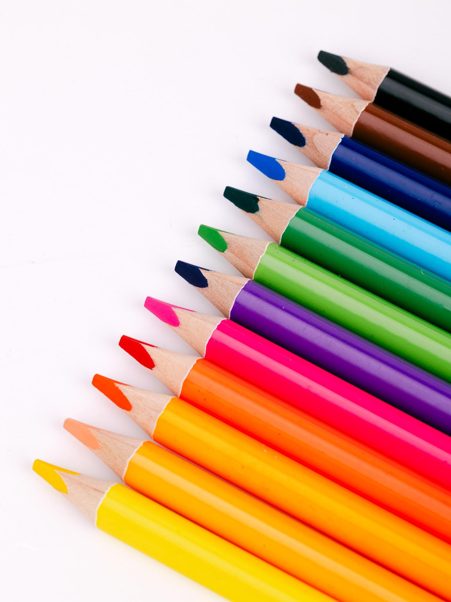Zestaw 12 kolorowych kredek w kartonowym opakowaniu ozdobionym folkowymi wzorami łowickimi.