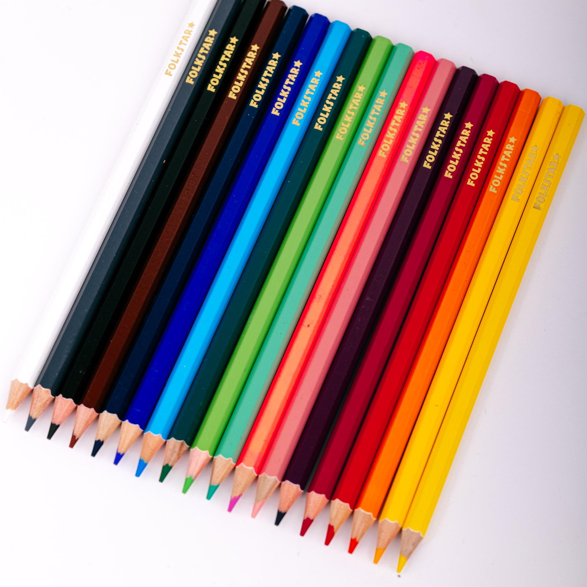 Pudełko zawiera 18 naostrzonych kredek wykonanych z drewna.