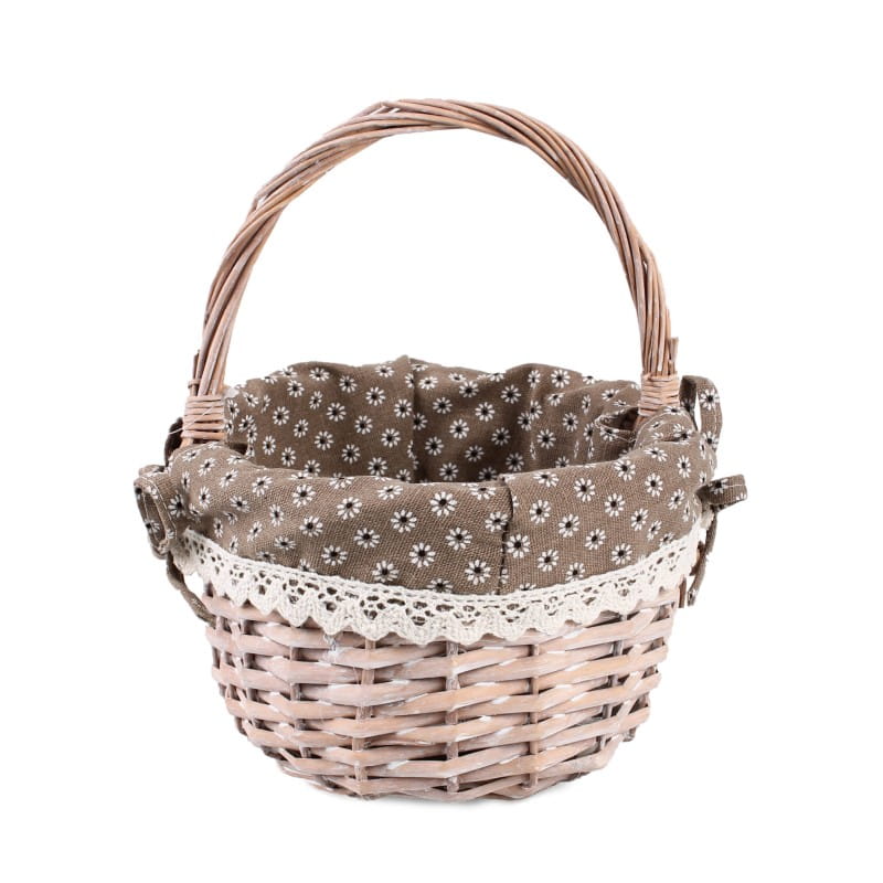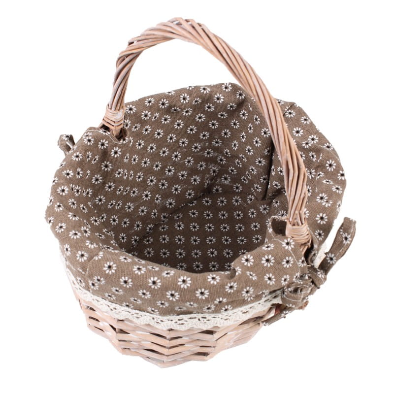 Przeznaczenie: koszyk prezentowy, koszyk na święconkę, koszyk wielkanocny, kosz wiklinowy z wyściółką, koszyk z ozdobnym materiałem, wiklinowy koszyk z materiałem, wielkanocny koszyk na święconkę