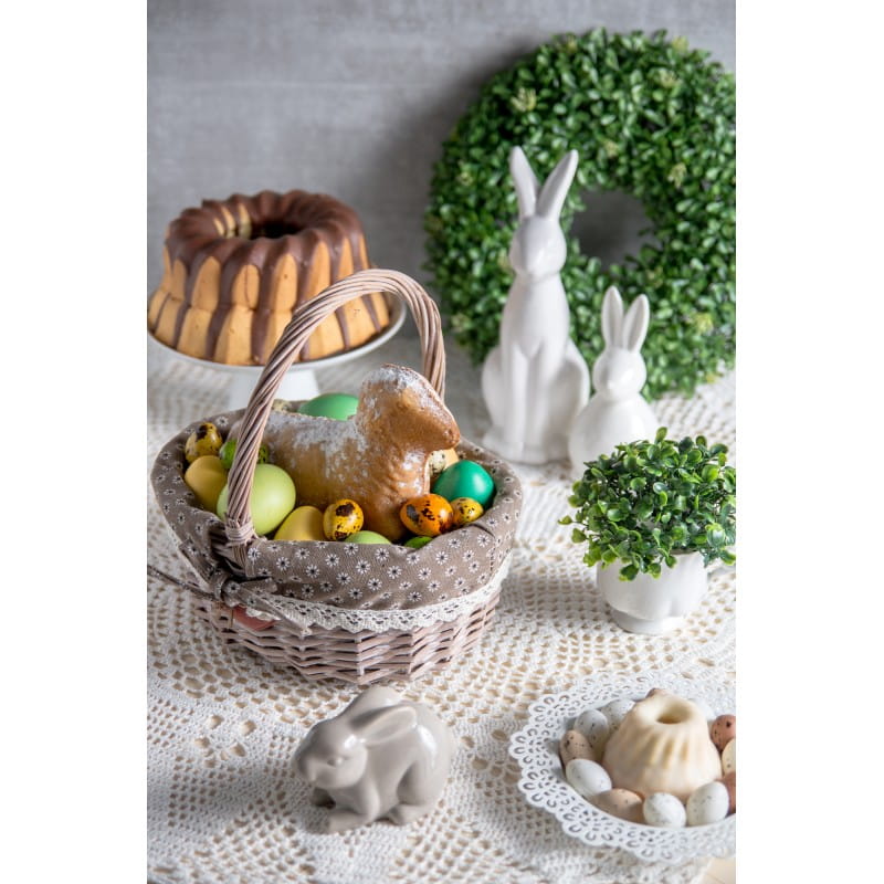 Wiklinowy koszyk z materiałem sprawdzi się w kilku rolach. Możesz go wykorzystać na przykład jako koszy wielkanocny na święconkę.