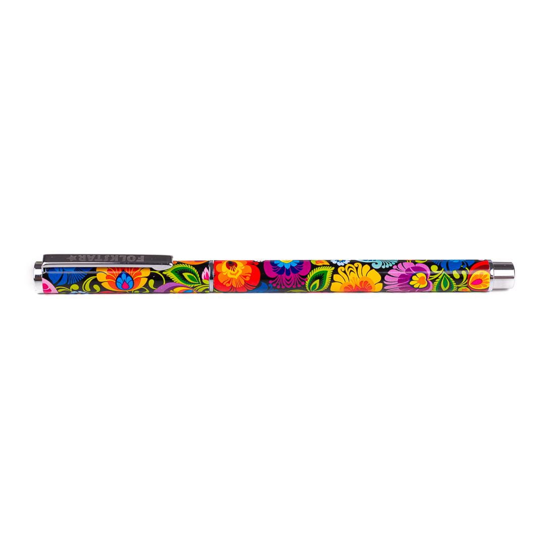 DŁUGOPIS FOLK ZE SKUWKĄ - WZORY ŁOWICKIE - CZARNY