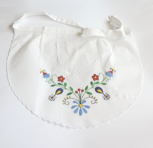 Fartuszek kuchenny ozdobiony haftem  z motywami kaszubskimi wykonanym przez znaną hafciarkę ludową.