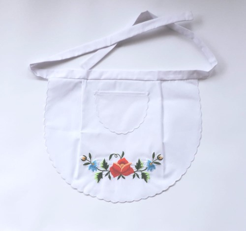 Mały fartuch kuchenny ozdobiony haftem łowickim