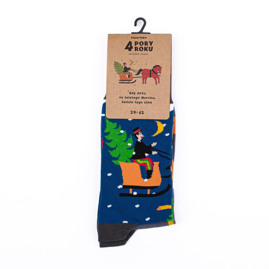 Folkowe skarpetki - 4 pory roku - Zima "Zbieranie chrustu"