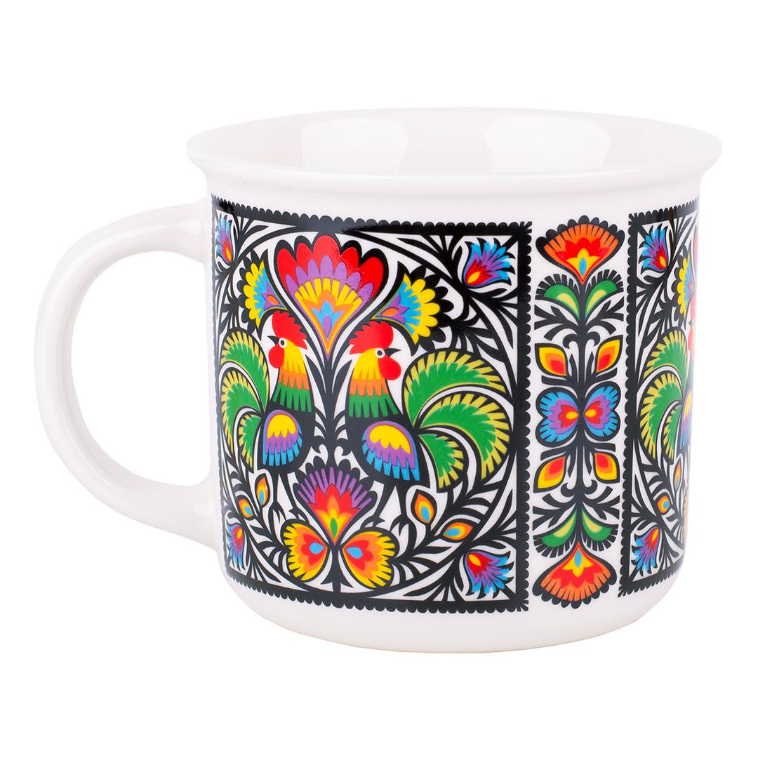 KUBEK FOLK 350 ML - WZORY ŁOWICKIE - KOGUTY