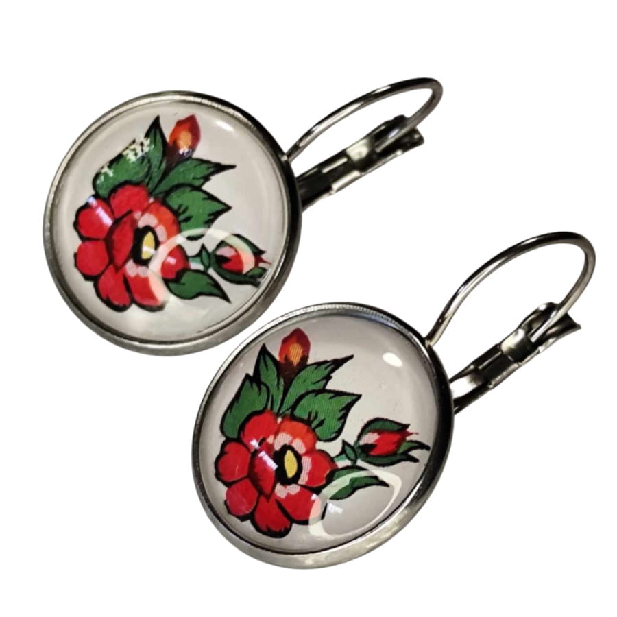 Ręcznie wykonane okrągłe kolczyki z ludowym wzorem kwiatowym z Zalipia.