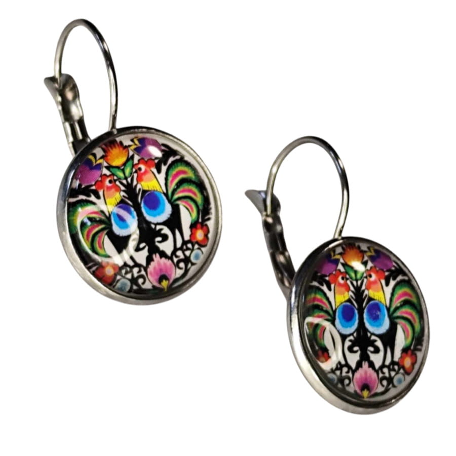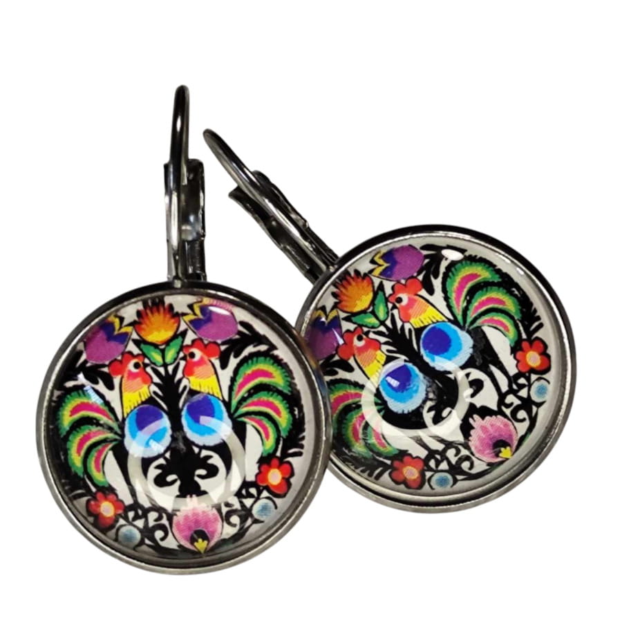 Kolczyki folk - koguty łowickie