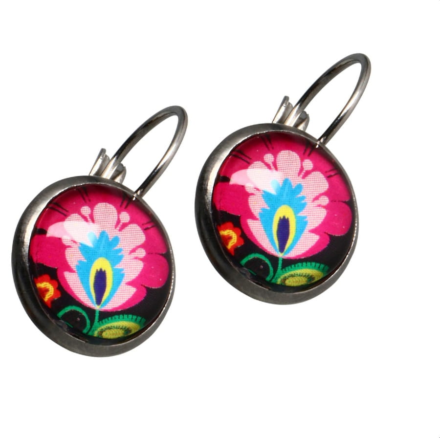 Kolczyki Folk na biglu - Wzory Łowickie - Kwiaty
