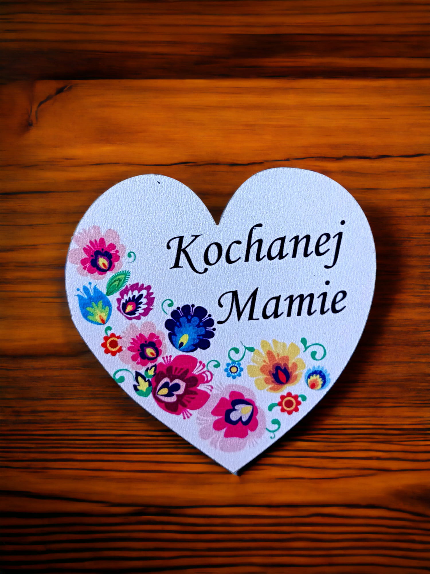 Na magnesie przedstawione jest serce z wzorem łowickim oraz napisem "Kochanej Mamie".