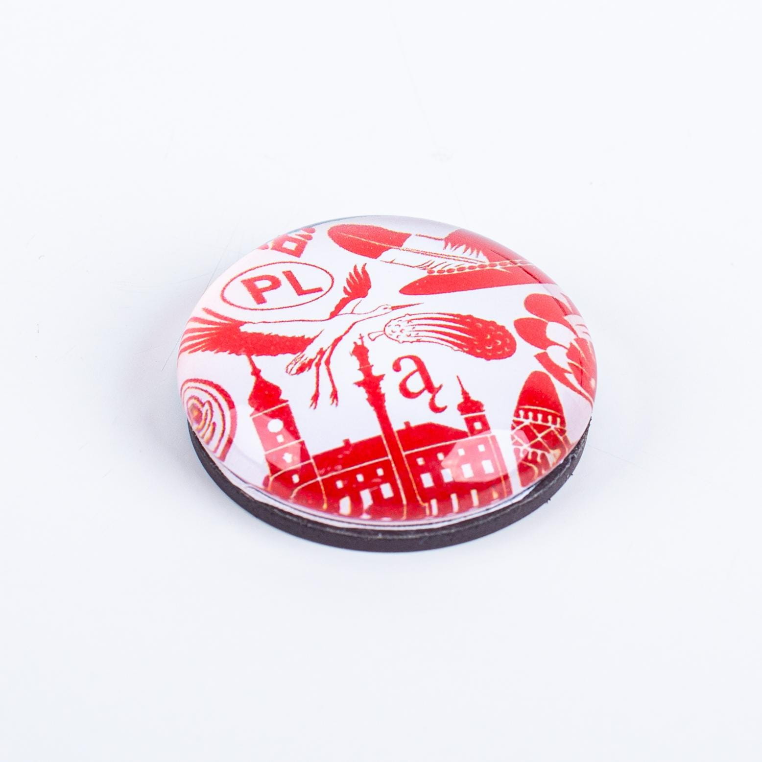 Okrągły szklany magnes - symbole Polski