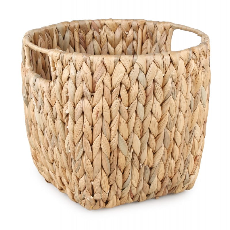 Kosz w stylu skandynawskim wykonany jest ręcznie z hiacyntu wodnego. Wzmocniony metalowym stelażem. Posiada wygodne uchwyty, dzięki którym przeniesiesz go z miejsca na miejsce bez najmniejszego problemu. Kosz ma podstawę w formie kwadratu, natomiast górna obręcz jest okrągła. Kosz na drobiazgi jest wytrzymały i mocny, ale zarazem lekki. Sprawdzi się w codziennych porządkach, jak i jako stały element ustawiony na twoim regale czy w szafie.