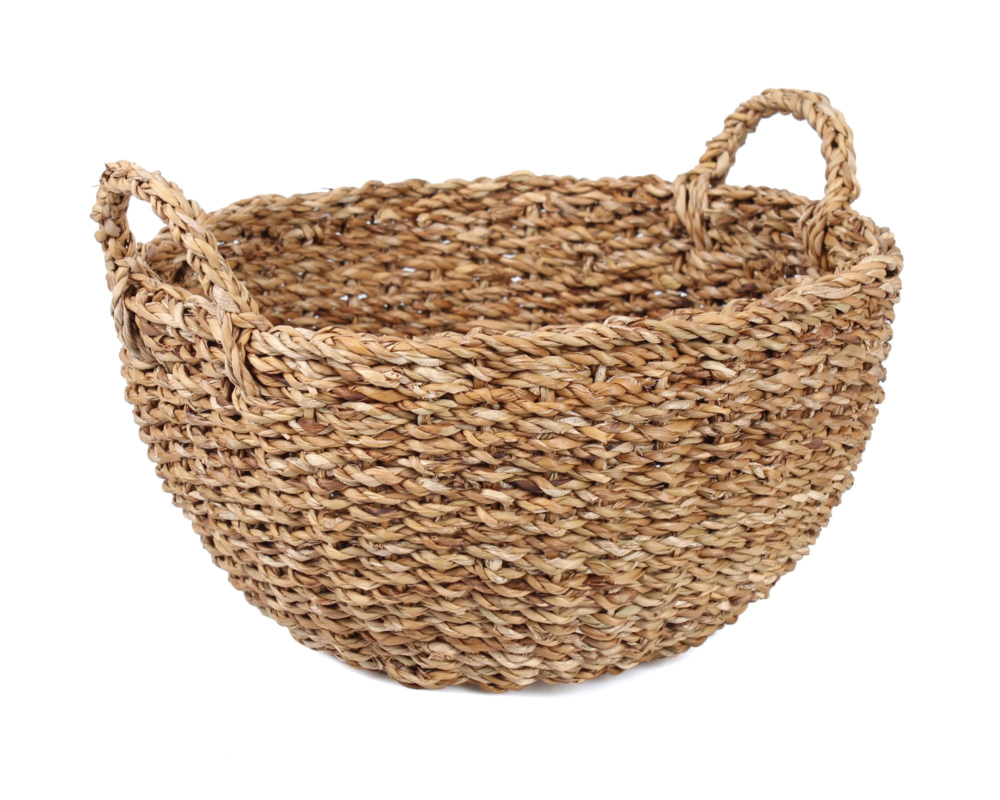 OKRĄGŁY KOSZ Z TRAWY MORSKIEJ Z UCHWYTAMI 35x35x15/19 cm