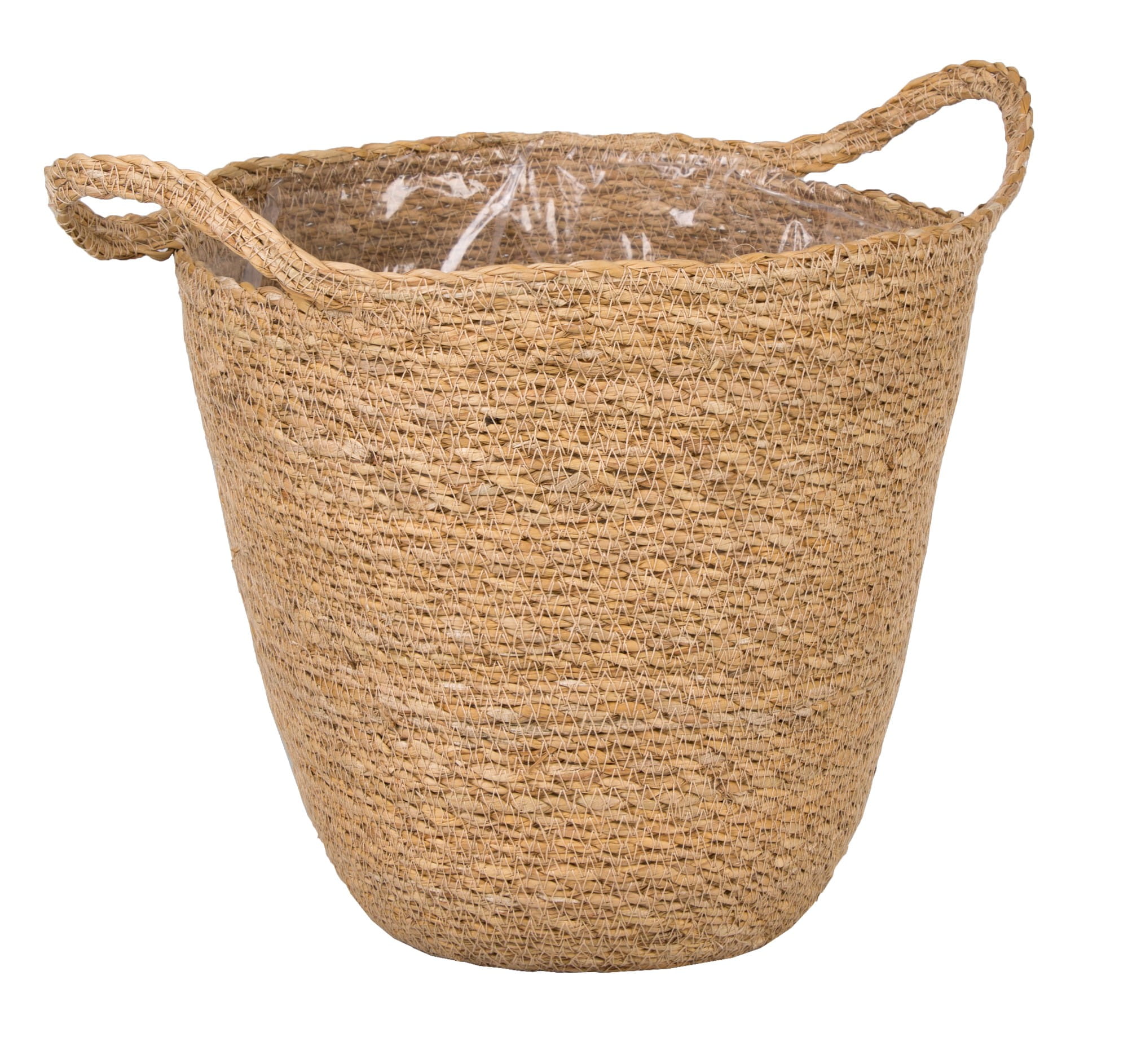 OKRĄGŁY KOSZYK Z TRAWY MORSKIEJ Z FOLIĄ I UCHWYTAMI 25/35x25x23/27 cm