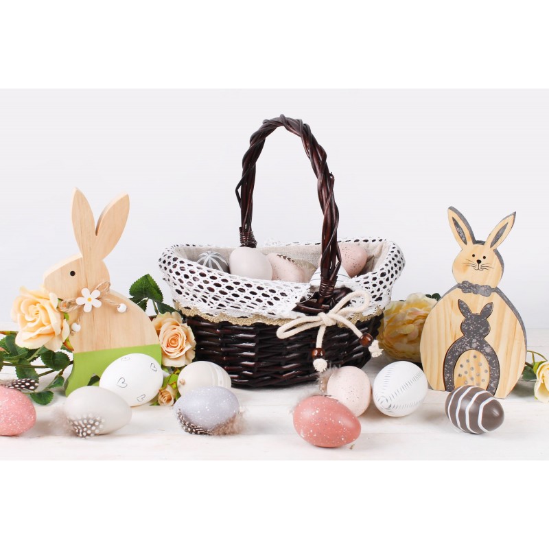 Szukasz wiklinowego koszyka wielkanocnego, który jest na tyle uniwersalny, że będzie go można wykorzystać także po świętach? Brązowy koszyk wiklinowy z materiałem daje właśnie taką możliwość. Ma idealny rozmiar na święconkę - nie jest ani za mały, ani za duży - w sam raz zarówno dla osoby dorosłej, jak i dziecka.