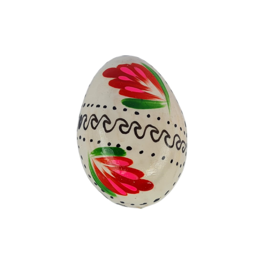 PISANKA WIELKANOCNA DREWNIANA - MALOWANA BIAŁA