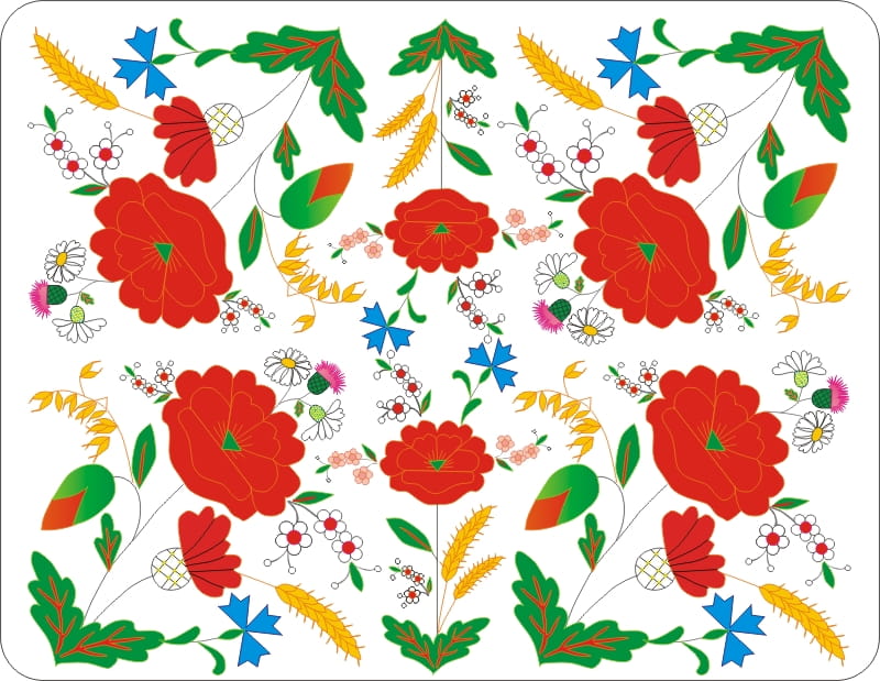 Biała folkowa podkładka pod mysz komputerową z nadrukiem inspirowanym haftem kociewskim.