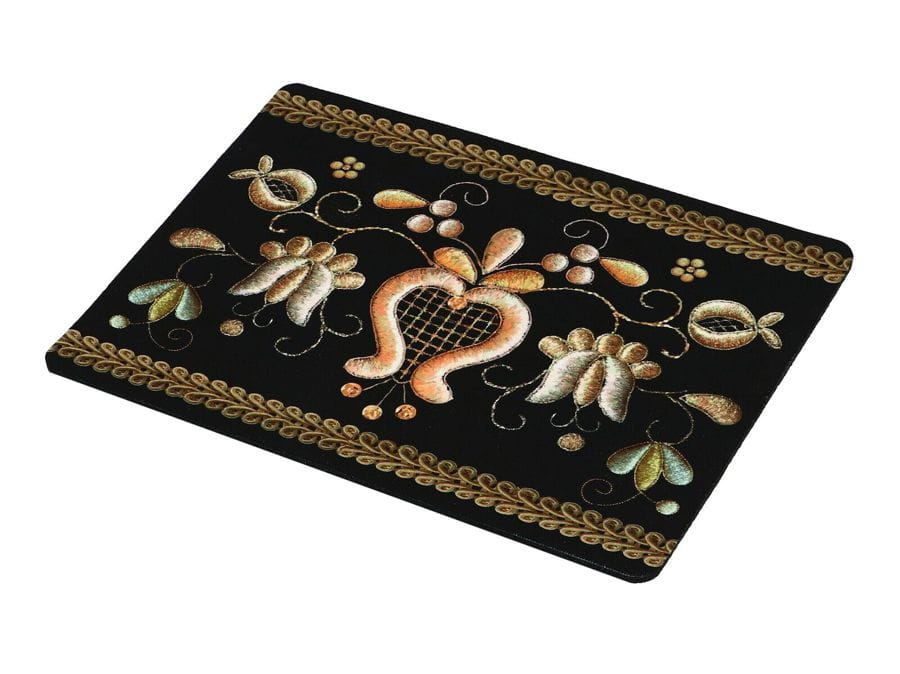 Czarna folkowa podkładka pod mysz komputerową z nadrukiem inspirowanym kaszubskim haftem czepcowym (złotnica).