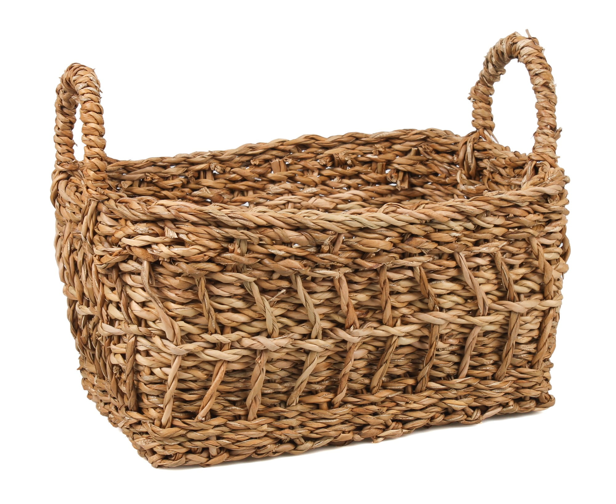 PROSTOKĄTNY KOSZYK Z TRAWY MORSKIEJ Z UCHWYTAMI 31x23x17/24 cm