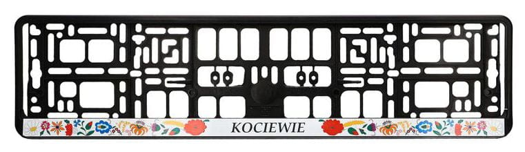 Kociewska nakładka na tablicę rejestracyjną na białym tle: