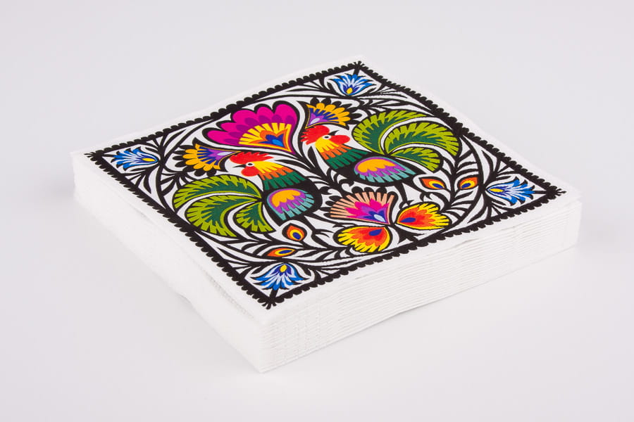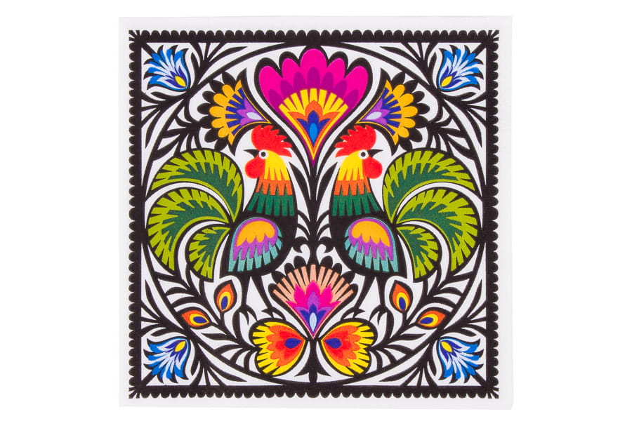 Serwetki papierowe folk z wzorami łowickimi - koguty