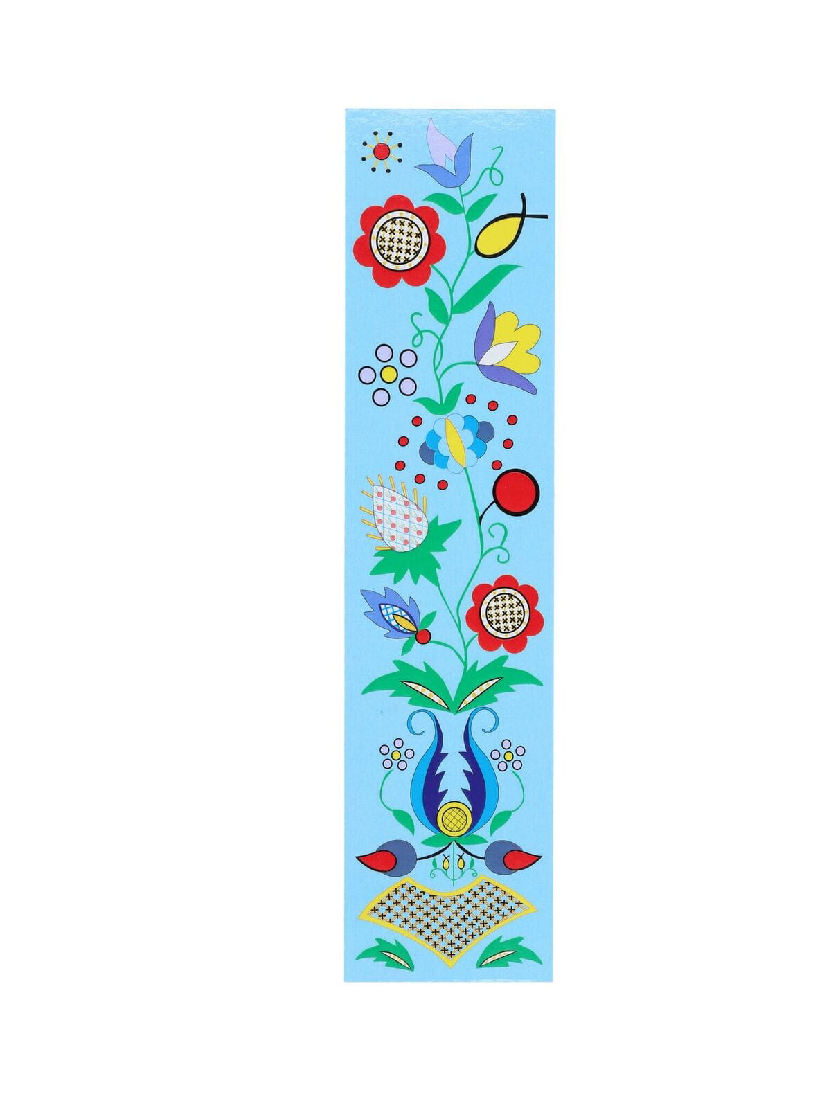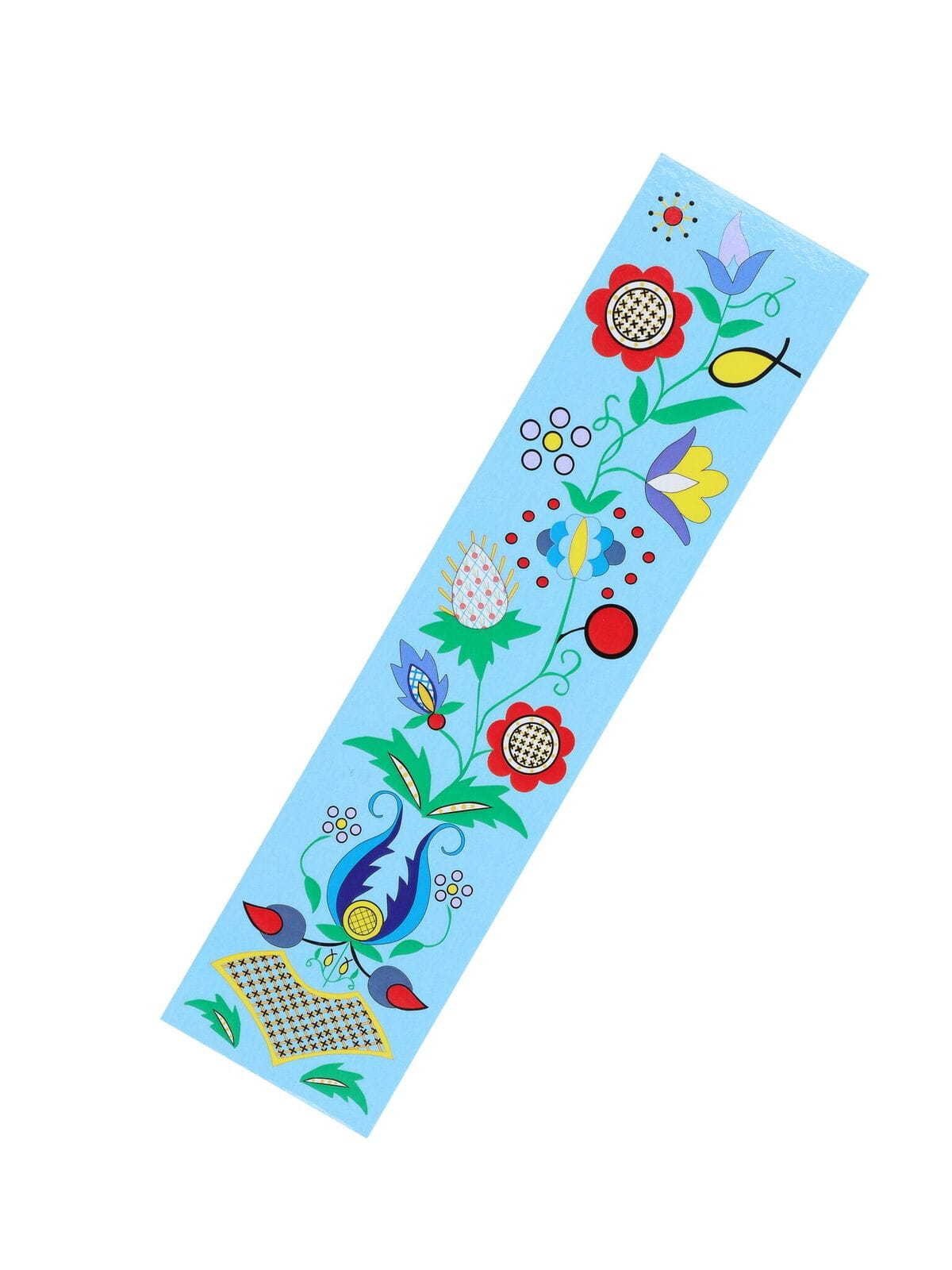 Folkowa zakładka do książki z wzorami inspirowanymi haftem kaszubskim szkoły puckiej.