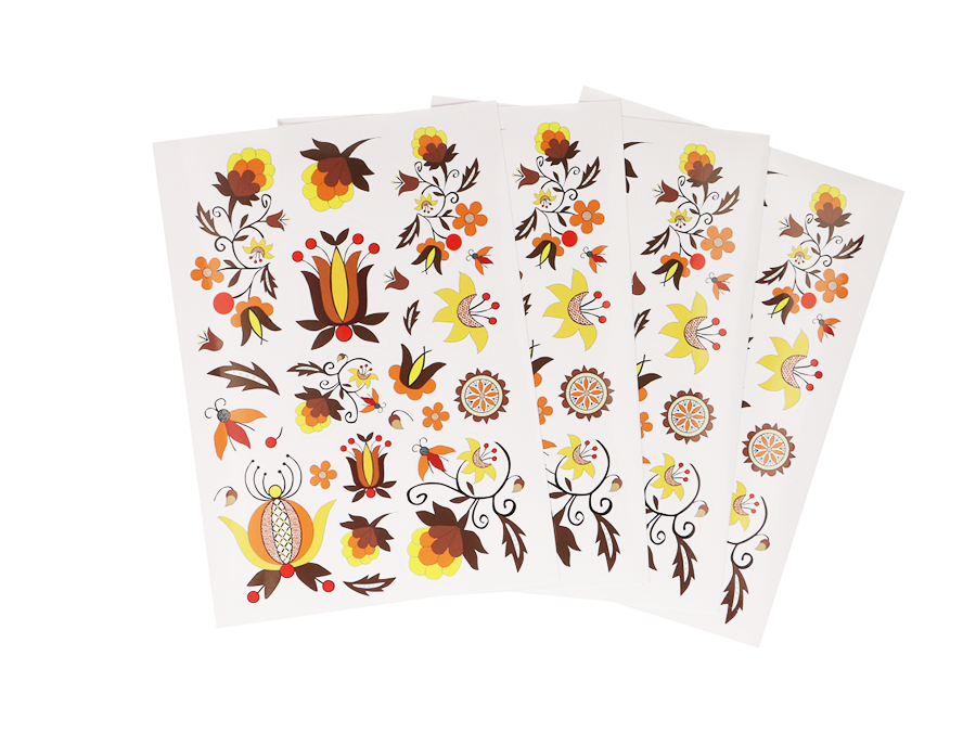 Zestaw naklejek z wzorami inspirowanymi haftem kaszubskim (szkoła borowiacka).