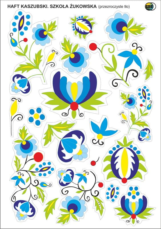 ZESTAW NAKLEJEK - WZORY KASZUBSKIE - HAFT ŻUKOWSKI PRZEZROCZYSTE TŁO