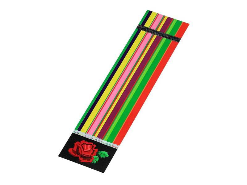 Wielokolorowa folkowa zakładka do książki z motywem inspirowanym łowickim strojem ludowym.