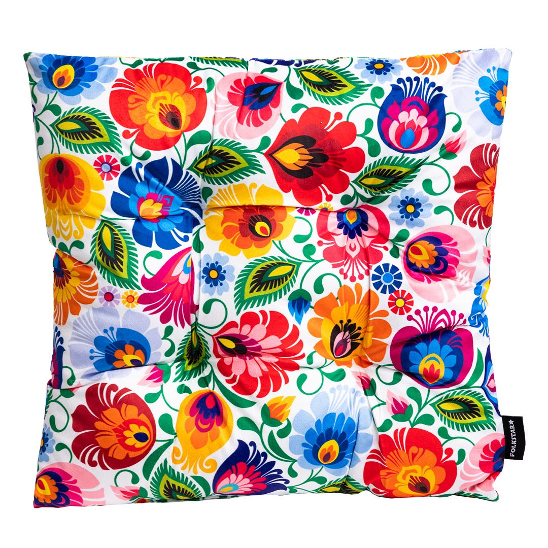 Poduszka na krzesło Folkowa - Wzory Łowickie Biała 45x45 cm