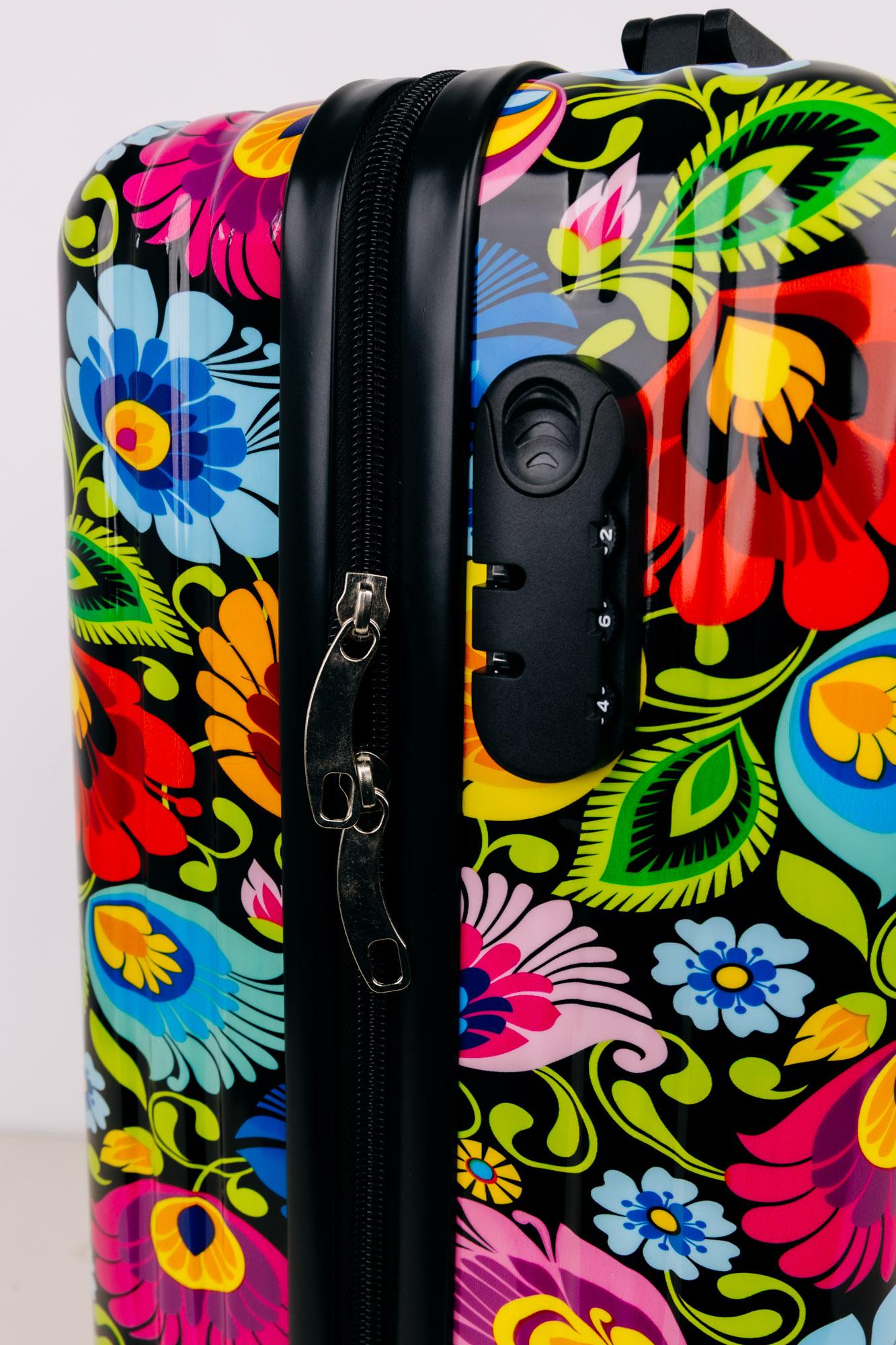 Udekorowana wyrazistym wzorem łowickim doda kolorytu do twoich podróży. Solidne wykonanie, płynnie działające kółka oraz wygodna rączka zapewniają komfort podczas podróży. Funkcjonalność, styl i folklor w jednym, gotowa na każdą przygodę.