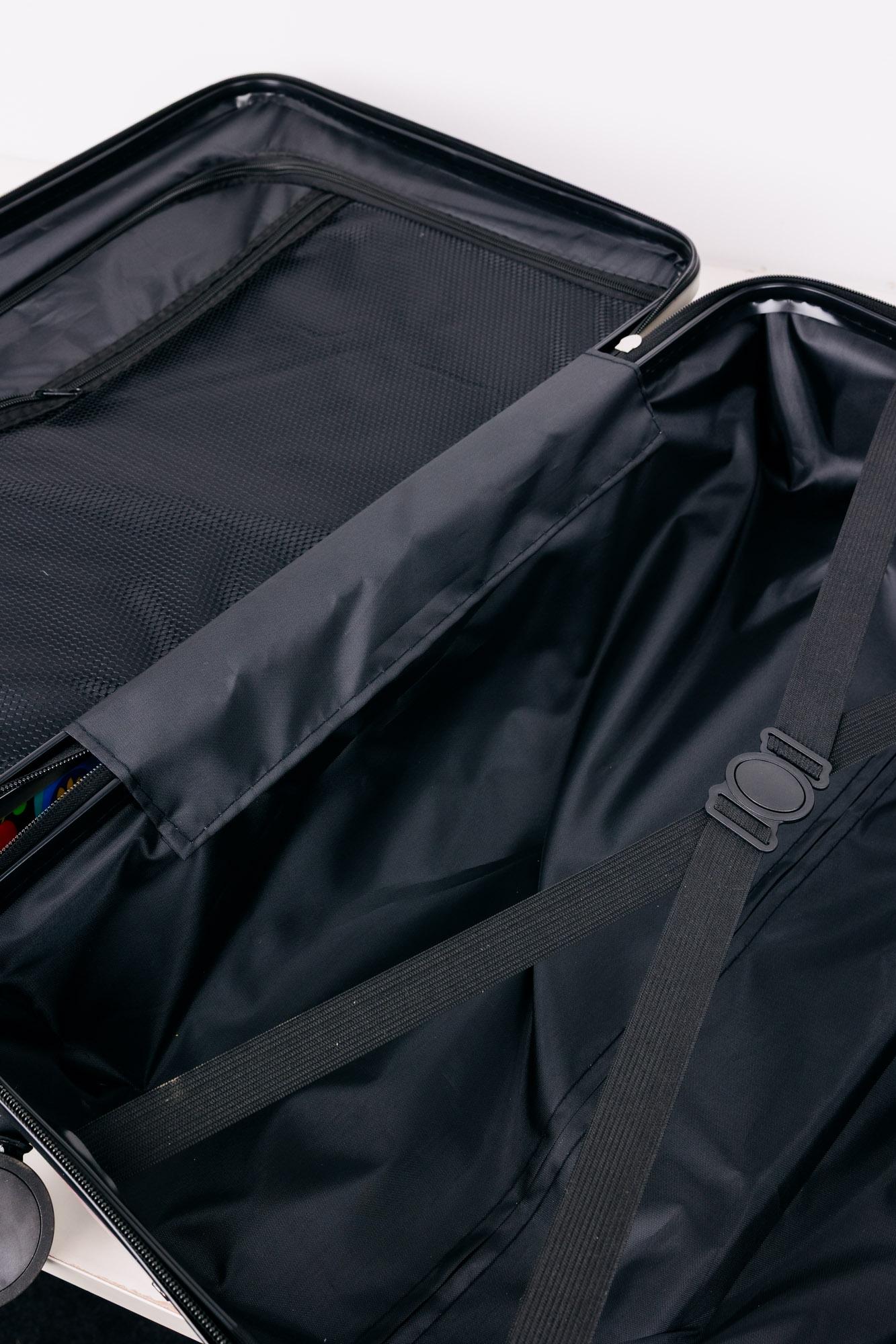 Wykonana ze sztywnego polikarbonu. W środku posiada szelki zabezpieczające, zapinana na suwak. Posiada zamek cyfrowy.