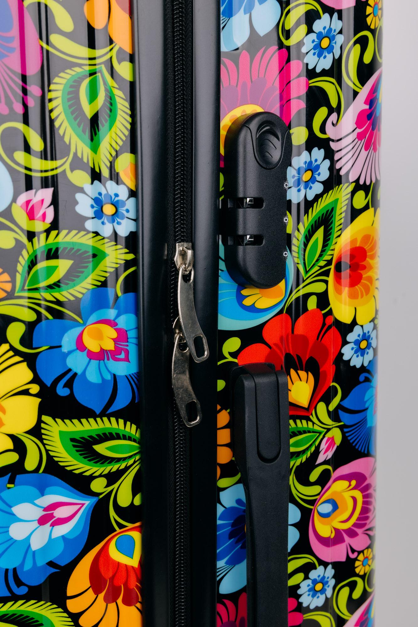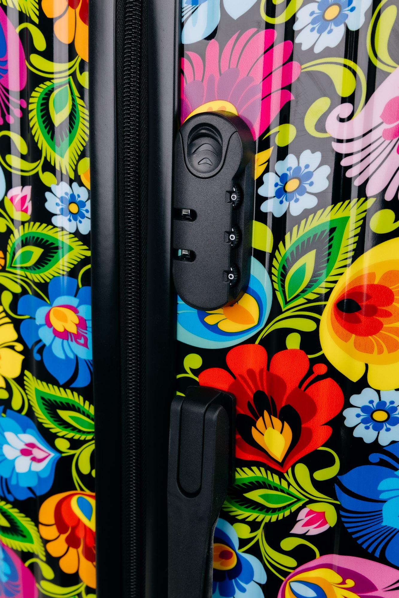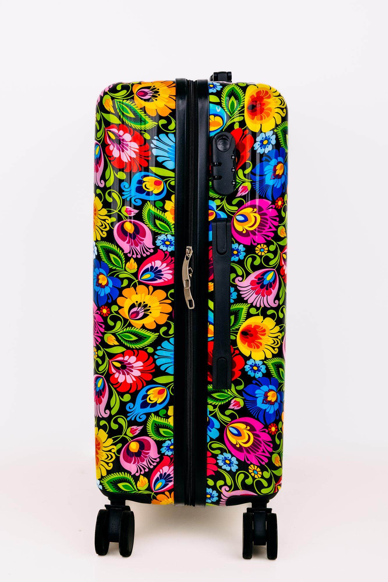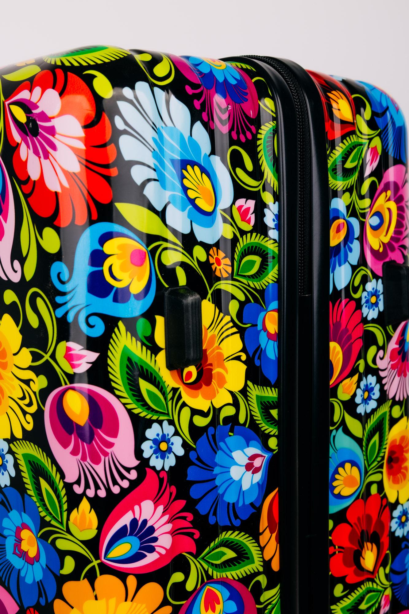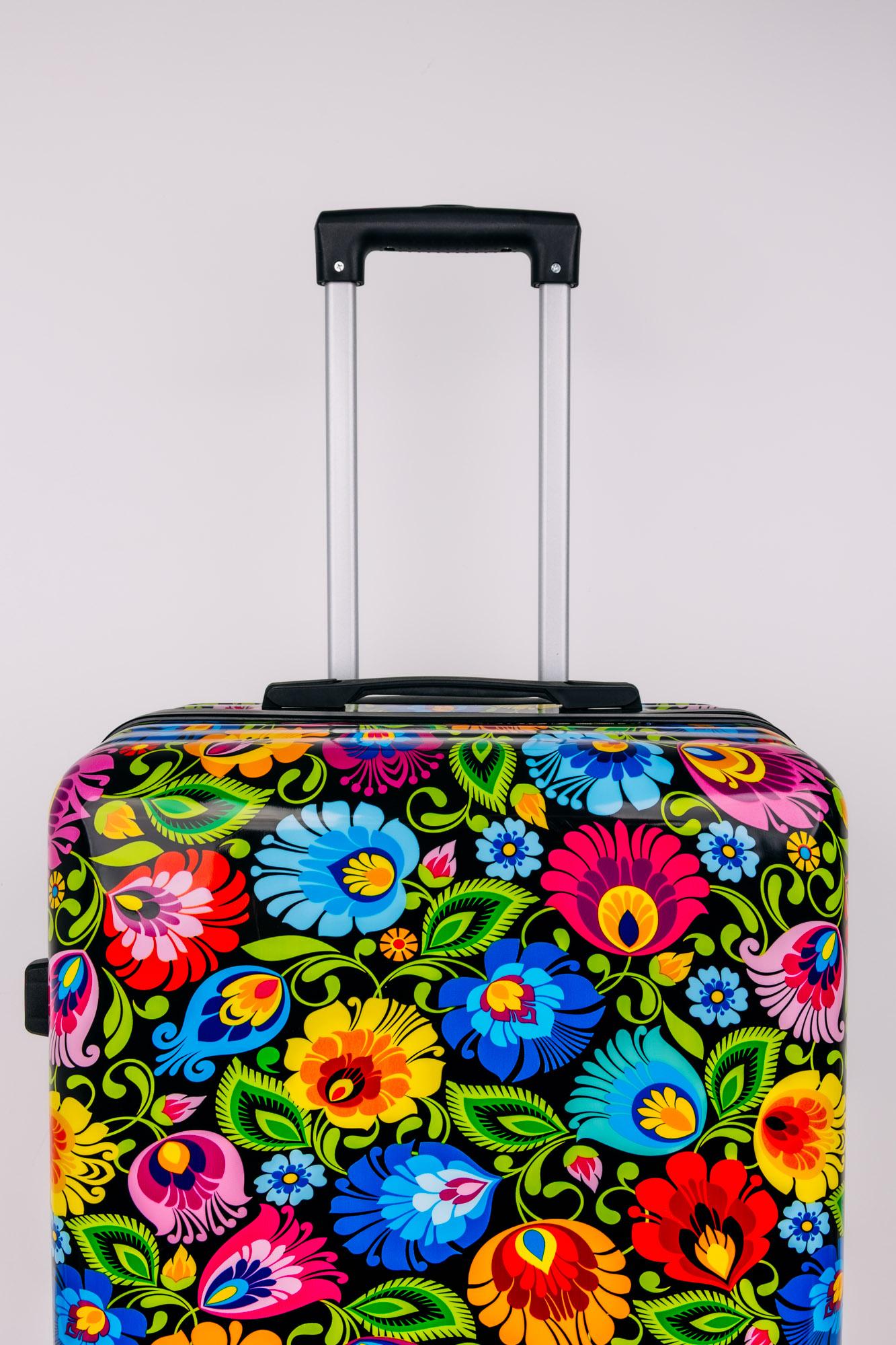 Udekorowana wyrazistym wzorem łowickim doda kolorytu do twoich podróży. Solidne wykonanie, płynnie działające kółka oraz wygodna rączka zapewniają komfort podczas podróży. Funkcjonalność, styl i folklor w jednym, gotowa na każdą przygodę.